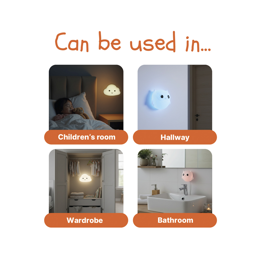 Roztomilé nástenné silikónové svetlo poskytuje jemné osvetlenie s meniacimi sa farbami a možno ho jednoducho pripevniť bez vŕtania – ideálne do detskej izby aj na nočnú orientáciu v byte.